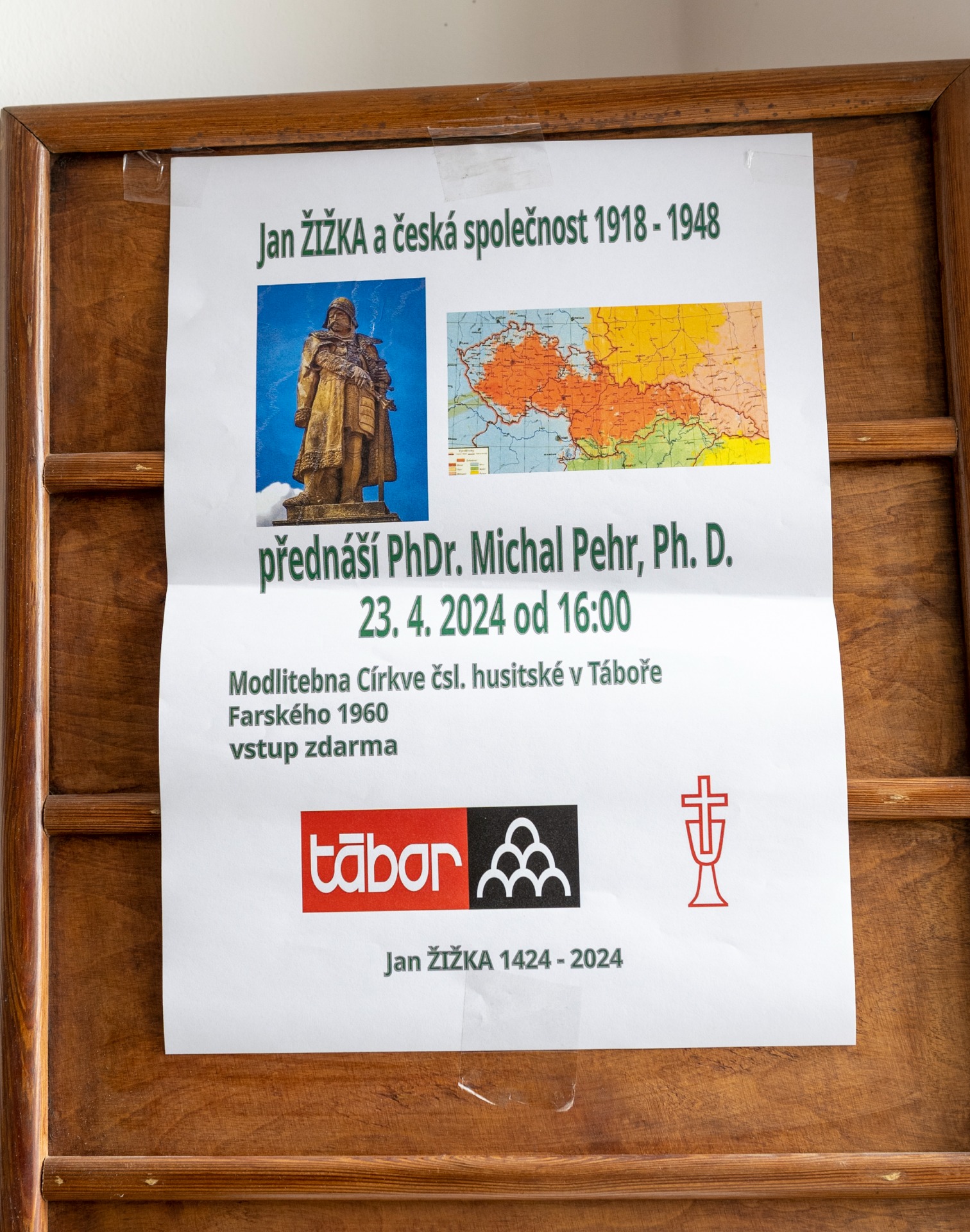 V úterý 23. 4. se v prostorách modlitebny CČSH v Táboře uskutečnila přednáška PhDr. Michala Pehra, Ph. D na téma „Jan Žižka a česká společnost 1918 – 1948“. Fotografie z poutavé přednášky si můžete prohlédnout ve fotogalerii níže.
